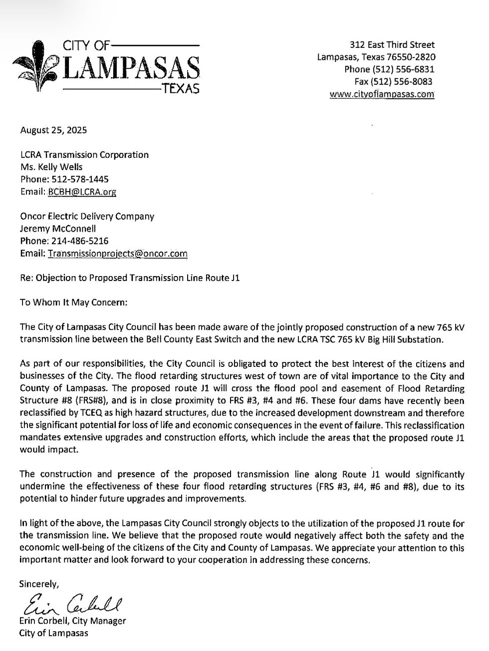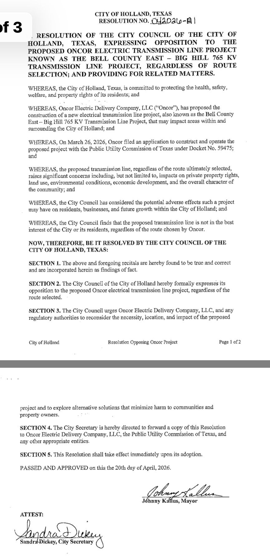 Below are some of the city responses to the next leg of the 765 kV line that will stretch from Eldorado switch to the Bell County switch.